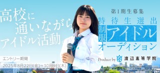 この度、渡辺高等学院プロデュースの「制服アイドルプロジェクト」が始動し、8月22日(金) より一般枠の募集開始いたしました。“現役女子高校生”だけが加入できる、高校3年間限定のアイドル活動です。