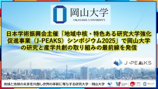 国立大学法人岡山大学(本部:岡山市北区、学長:那須保友)は2025年8月4日 、日本工業俱楽部会館(東京都千代田区)で開催された日本学術振興会(JSPS)主催「地域中核・特色ある研究大学強化促進事業(J-PEAKS)シンポジウム2025」において、本学がJ-PEAKSで取り組んでいる研究と産学共創の活動の最新情報をポスター展示にて紹介しました。