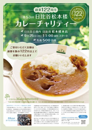 本年は創業年数122年にあわせ、122円以上のご寄付でカレーを召し上がって頂きます。チャリティの精神をご理解いただきご賛同いただいた寄付金は、当店の寄付金と併せて全額を公益財団法人きずな育英基金(代表理事 山田 庸男)に寄付させていただきます。