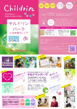 忙しいママが、深呼吸できる1日を。チルドリンは2025年9月22日(月) 、日本橋髙島屋S.C.内の日本橋ガレリアコミュニティスペースで、心身をととのえる体験をそろえた月例イベント「チルドリンパーク|ママの癒しDAY」を開催します。来場は無料。