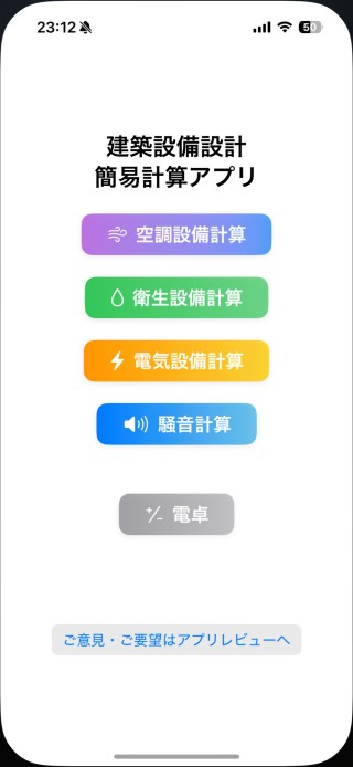 アプリ名:建築設備計算アプリ