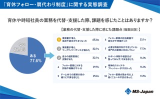 この度、管理部門・士業の総合転職サービスを運営するMS-Japan(エムエスジャパン)は、【育休フォロー・肩代わり制度に関する実態調査】を発表いたしました。