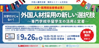 各種資格・国家試験の総合スクール株式会社東京リーガルマインド(代表者:反町 雄彦、本社:東京都千代田区、以下LEC)は、9月26日(金) に「【外国人雇用支援 無料セミナー&交流会】大学だけじゃない!外国人材採用の新しい選択肢 〜専門学校卒留学生の活用と定着〜」を開催します。