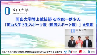 国立大学法人岡山大学(本部:岡山市北区、学長:那須保友)は2025年9月17日 、陸上競技部の石本龍一朗さん(教育学部3年)が「岡山大学学生スポーツ賞(国際スポーツ賞)」を受賞し、那須保友学長と菅誠治理事(教学担当)・上席副学長への表敬訪問を行いました。今回の表彰は、2025年11月 に開催される「第25回夏季デフリンピック競技大会」の男子400mハードル日本代表に内定したことによるものです。