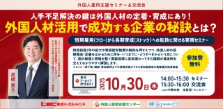 各種資格・国家試験の総合スクール株式会社東京リーガルマインド(代表者:反町 雄彦、本社:東京都千代田区、以下LEC)は、10月30日(木) に外国人雇用支援 無料セミナー&交流会「外国人材活用で成功する企業の秘訣とは?」を開催します。