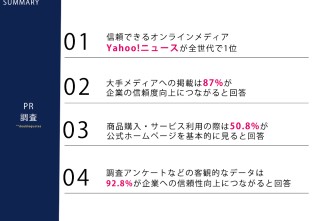 これらの結果を踏まえると、企業は公式ホームページに「Yahoo!ニュースに取り上げられました」「○○(大手メディア)に掲載されました」といった実績を積極的に掲載することで、閲覧者からの信頼性向上が期待できます。