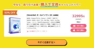 1000以上の動画配信サイト(Netflix、Amazonプライム、Disney+、U-NEXTなど)から高品質な動画や音楽をダウンロード保存できる最高峰のソフトウェア「CleverGet オールインワン 23」永続版が、通常価格65,990円のところ、半額の32,995円(税込)で手に入る大チャンスです。