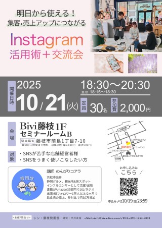 「明日から使える!集客・売上アップにつながるインスタ活用術×交流会」が、