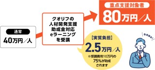2025年10月15日 、クオーク株式会社(本社:東京都渋谷区、代表取締役:前川英之、以下クオーク)は、キャリアアップ助成金・正社員化コースの受給額アップを狙うスキーム「キャリアアップ助成金アシスト10」の提供を開始します。本スキームを実行する手段(プロダクト)として、同社のeラーニングプラットフォームQualif(クオリフ)を利用した、標準学習時間10時間の人材開発支援助成金対応のeラーニング研修「生成AI時代のDX」(価格:10万円/人・税込)を提供。このeラーニング研修を受講いただくことで、キャリアアップ助成金・正社員化コースの「重点支援対象者」の要件を満たすことになり、キャリアアップ助成金の受給額が40万円から80万円に倍増します(中小企業の場合)。