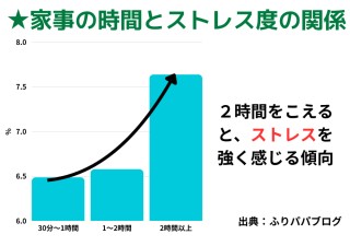 全国の共働き家庭151人に調査した結果、家事時間が長くなるほどストレス度が高くなる傾向が明らかになりました。