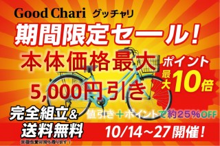“安心とデザイン”を両立したママチャリブランド「Good Chari(グッチャリ)」は、2025年10月14日(月) より、楽天市場・公式通販サイトにて期間限定のセールキャンペーンを開催しております。