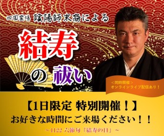 今回のイベントでは、四国霊場 陰陽師末裔(一般社団法人 日本占導師協会の代表理事でもあります)による祓い・結寿祈祷を、ご来場いただいた皆様にいたします。
