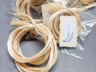 今回販売を開始するのは、その原料となるバナナ繊維そのもの。柔らかく光沢のある自然な質感が特徴で、天然繊維の使用が必要な場面での結束や各種手芸素材など、お使いになる方のアイディア次第で様々な用途でお使いいただけます。