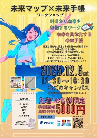 2025年11月22日(土) 、COCOCOLORは、未来マップ×未来手帳ワークショップを2025年12月6日(土) に開催することを発表いたします。