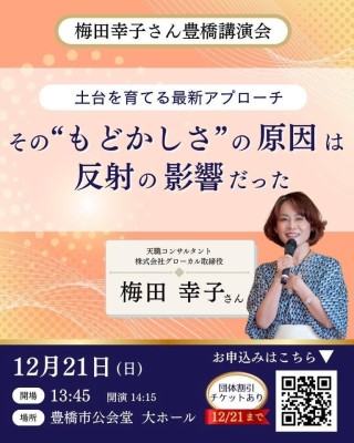 梅⽥幸⼦さん豊橋講演会実⾏委員会(所在地︓愛知県豊橋市)は、2025年12月21日(日) 、豊橋市公会堂 大ホールにて、「その“もどかしさ”の原因は反射の影響だった ―土台を育てる最新アプローチ―」と題した、講演会を開催いたします。