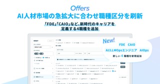 AI時代のエンジニア転職プラットフォーム「Offers(オファーズ)」を運営する株式会社overflow(本社:東京都港区、代表取締役:鈴木裕斗、以下 overflow)は、急速に進化するAI技術と市場ニーズに対応するため、募集・登録可能な職種カテゴリーを大幅にアップデートいたしました。