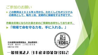 一般財団法人 日本産業技能教習協会(本部:東京都荒川区)は、2026年4月 より毎月1回第三土曜日、熊谷教習所(埼玉県熊谷市)において、**「酸素欠乏・硫化水素危険作業主任者技能講習(能力向上教育)」**を新規開講いたします。