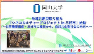 本学は今後も、一般社団法人シネコカルチャーおよび自治体・企業・地域団体と連携しながら、三好市の棚田を舞台とした取り組みを本格化させ、自然共生と地域文化の再生を両立する社会実装モデルの構築を目指します。シネコカルチャーを通じた地域共創の輪をさらに国内外へ広げ、持続可能な未来に向けた新たな共創のかたちを探求していきます。引き続き、地域中核・特色ある研究大学:岡山大学の取り組みにご期待ください。