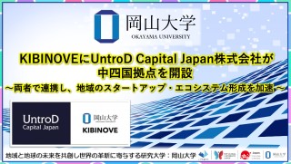 国立大学法人岡山大学(本部:岡山市北区、学長:那須保友)の本学津島キャンパス共創イノベーションラボ「KIBINOVE(きびのべ)」に2025年11月1日 、ベンチャーキャピタルであるUntroD Capital Japan株式会社(本社:東京都港区、以下UntroD)の中四国拠点が開設されました。