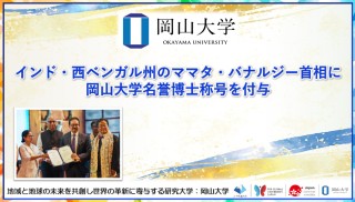 国立大学法人岡山大学(本部:岡山市北区、学長:那須保友)は、2025年11月12日 、インド共和国西ベンガル州コルカタ市において、西ベンガル州のママタ・バナルジー首相に名誉博士称号を付与しました。これは、アジア出身の女性として本学初の付与となります。付与式では、約2,000人の政府関係者、教育関係者、市民らが見守る中、那須保友学長が名誉博士記をママタ首相に手渡しました。