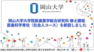 国立大学法人岡山大学(本部:岡山市北区、学長:那須保友)の大学院医歯薬学総合研究科では、医歯科学専攻 修士課程に「社会人コース」を新設しました。