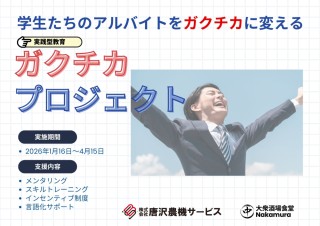 「想像を超える感動を与える」をミッションに掲げ、農業機械のマーケットプレイス「ノウキナビ」を運営する株式会社唐沢農機サービス(所在地:長野県東御市、代表取締役:唐澤 健之)は、運営する「大衆酒場食堂Nakamura」において、勤務する学生アルバイトを対象に、実社会で通用する課題解決力や企画力を養う実践型教育プログラム「ガクチカプロジェクト」を2026年1月16日 より開始いたします。本プロジェクトは、単なる労働の対価としての給与提供に留まらず、学生が主体となって店舗運営の課題を解決し、その成果を就職活動で活用できる「本物の実績」として可視化する、飲食業界の新しいアルバイトスタイルの確立を目指す取り組みです。