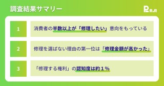 R&R株式会社(東京都千代田区、代表取締役 池田隆行、以下R&R)は、修理や買い替えに関する消費者の意識や行動の実態を把握するため、インターネット調査を実施しました。