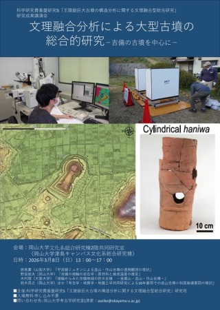 国立大学法人岡山大学(本部:岡山市北区、学長:那須保友)では、2026年3月8日(日) 13:00~17:00に科学研究費基盤研究S「王陵級巨大古墳の構造分析に関する文理融合型総合研究」研究班の研究成果講演会「文理融合分析による大型古墳の総合的研究-吉備の古墳を中心に-」を本学津島キャンパスで開催します。