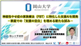 そこで、国立大学法人岡山大学(本部:岡山市北区、学長:那須保友)の学術研究院医歯薬学域(医)医療情報化診療支援技術開発講座の長谷井嬢教授(整形外科)は、岡山大学病院小児心身医療科と連携し、子どもを支える家族を支援するために、家族療法(FBT)の専門知識を学習したAIチャットボットを開発しました。AIが「医療の空白」を埋めるパートナーとなることで、家族の心の負担を減らし、子どもたちの回復を後押しします。