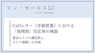 新時代の営業手法を提案する株式会社Emooove(本社:東京都品川区、代表取締役CEO:藤澤諒一)は、同社が運営するオウンドメディア「シン・セールス総合研究所」において、決裁者向けCxOレター(手紙営業)における「地域別の反応率差異」に関する分析レポートを公開しました。