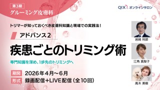 株式会社QIX(所在地:東京都町田市、代表取締役社長:生田目康道)は、オンラインサロン『トリマーが知っておくべき皮膚科現場での実践法!【第3期】グルーミング皮膚科 ―アドバンス2―』を開催いたします。