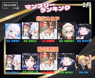 株式会社ファンスター(東京都渋谷区)が運営するVライバー事務所「REALISER(レアリゼ)」が、所属するVライバーの2026年2月 度のマンスリーランキングを発表致しました。活躍するVライバーの皆様を応援宜しくお願い致します。