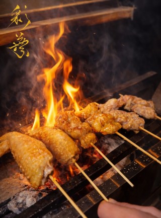 彩葉の特徴は、本格炭火で焼き上げる焼き鳥です。炭火の強い火力で一気に焼き上げることで、外は香ばしく中はジューシーな焼き鳥に仕上がります。ねぎま、もも、皮などの定番串はもちろん、炭火焼きならではの香ばしさを楽しめる焼き鳥を提供しています。