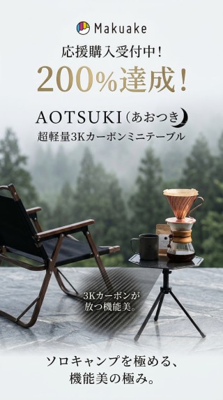 幾何学的な美しさと実用性を融合させるデザインスタジオAotsuki Designは、新たな空間構築の提案として「3K カーボンタクティカルテーブル」を発表し、Makuakeにて先行販売を開始いたしました。公開直後から、サイバーパンクやメカニカルなデザインを好むガジェットファン、および本格的なキャンパーから熱い支持を集めています。