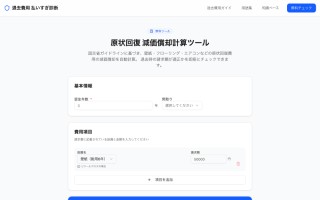 ツールは登録不要で利用でき、居住年数と項目を選択するだけで30秒以内に適正な借主負担額を算出します。フローリング(耐用年数15年)、畳(6年)、エアコン(6年)など15項目の減価償却に対応し、スマートフォンからも利用可能です。https://taikyo.xyz