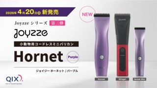 株式会社QIX(所在地:東京都町田市、代表取締役社長:生田目康道)は、品質の高さと使いやすさを兼ね備えたクリッパーブランドJoyzzeシリーズ待望の第三弾として、プロモデルクリッパー『Joyzze Hornet (Purple)』を2026年4月20日(月) より全国の動物病院・トリミングサロンに向けて販売開始いたします。