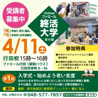 行田セレモニーグループ(埼玉県行田市)は、地域住民を対象とした終活講座「2026年度 ファミール終活大学」を2026年4月11日(土) より開校いたします。