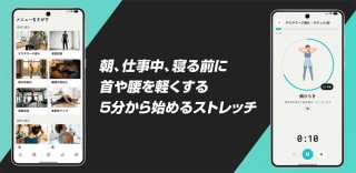 目的別6カテゴリ(デスクワーク疲れ/姿勢改善/朝の目覚め/就寝前リラックス/運動前後/柔軟性向上)と、部位別8カテゴリから40種類以上のプログラムを収録しています。