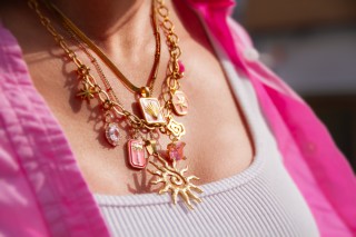 Pink Sunsetの最大の特徴は、200種類以上のチャームと50種類以上のチェーンから自由に組み合わせ、その場でオリジナルジュエリーを制作できる「Charmbar(チャームバー)」です。予約不要で、その日のうちにお持ち帰りが可能です。