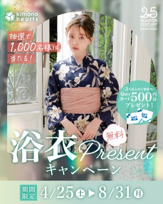 今年もキモノハーツならではのハイセンスな浴衣をご用意し、1,000名様へお渡しいたします。